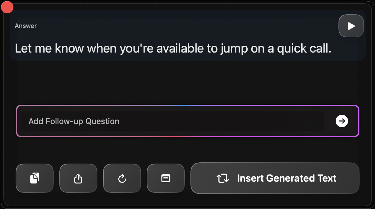 No copy-paste. No tab switching. AI where your cursor already is.